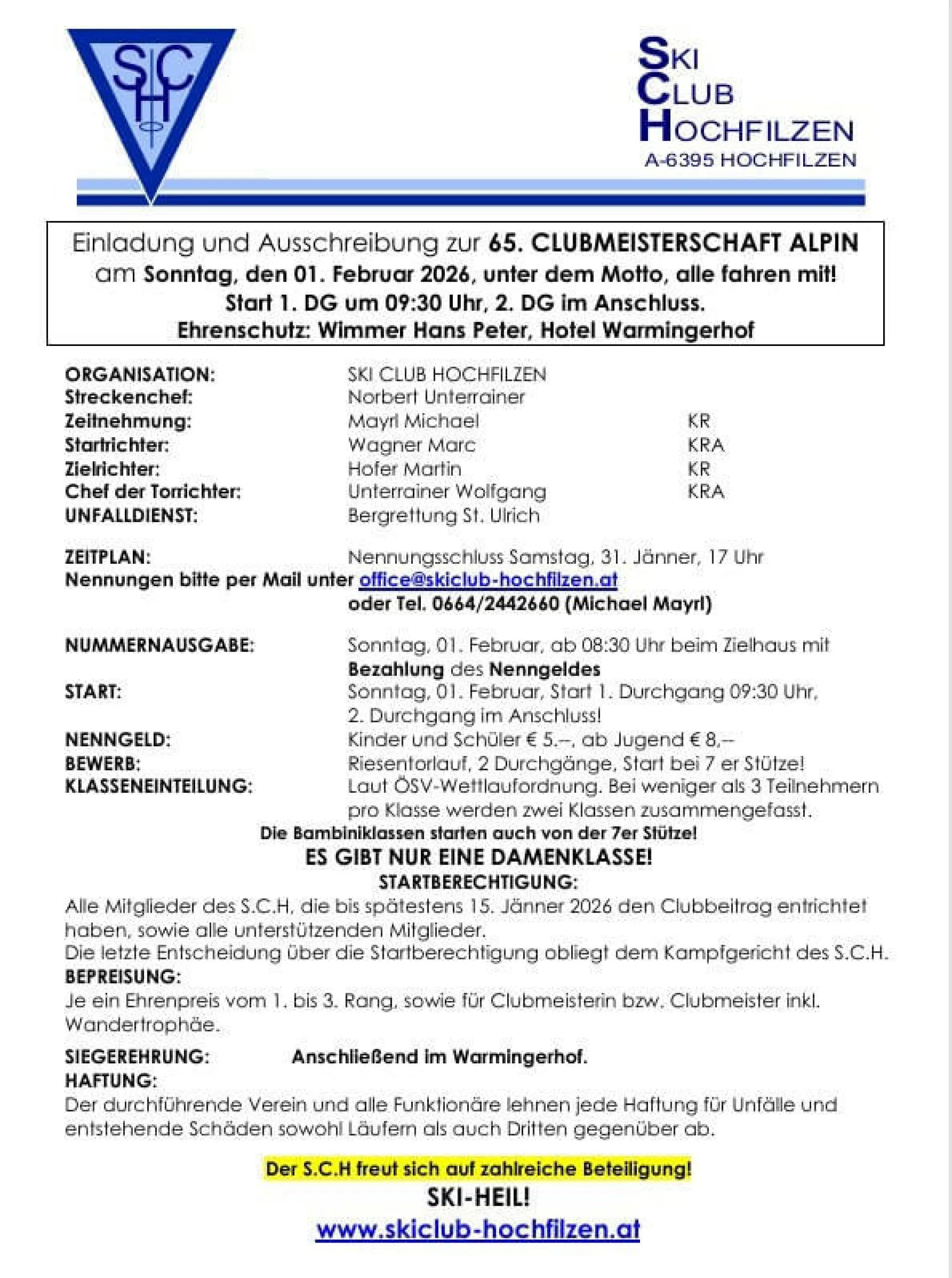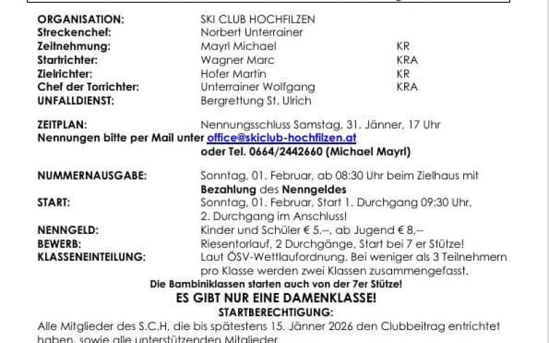 Einladung zur heurigen Clubmeisterschaft ⛷️