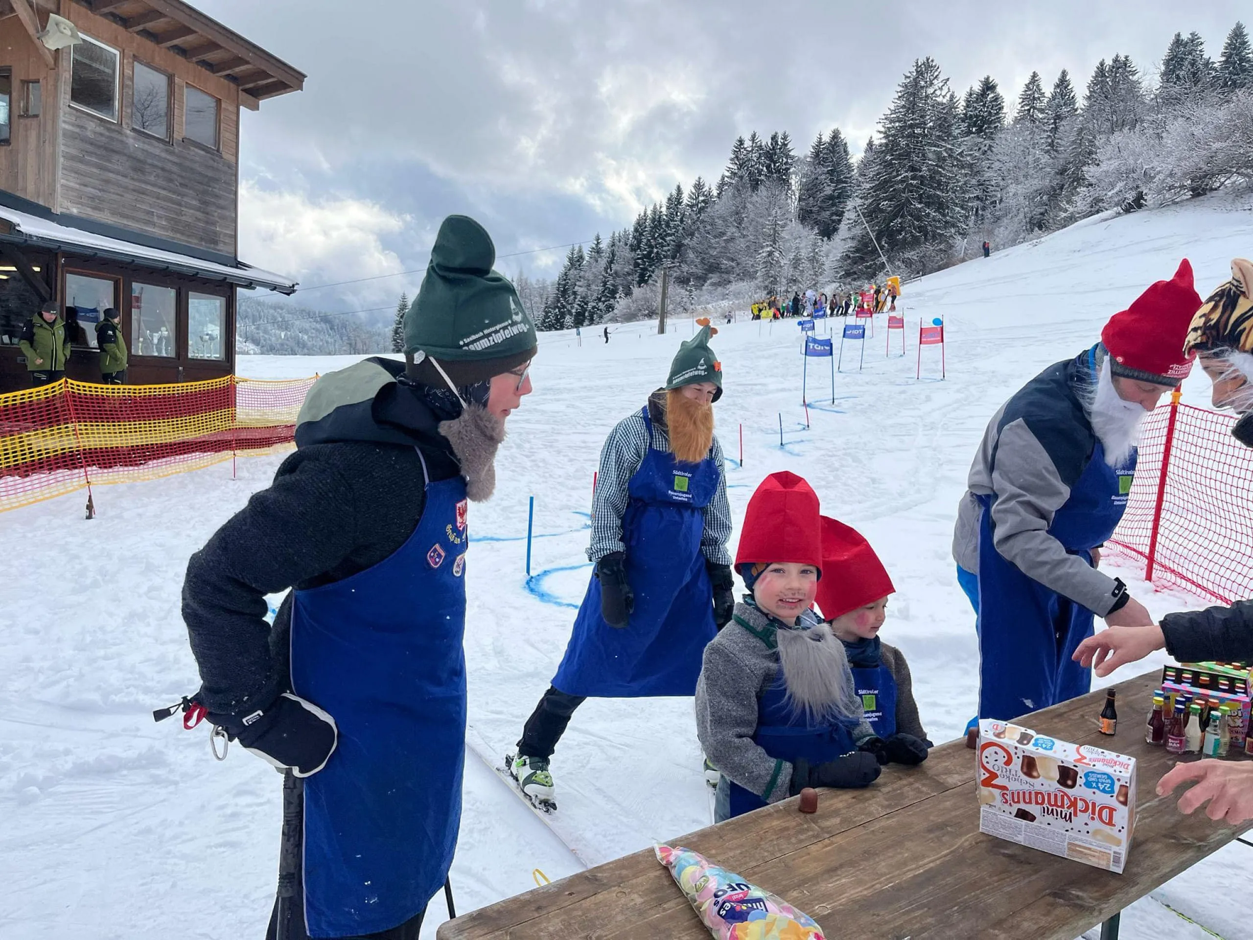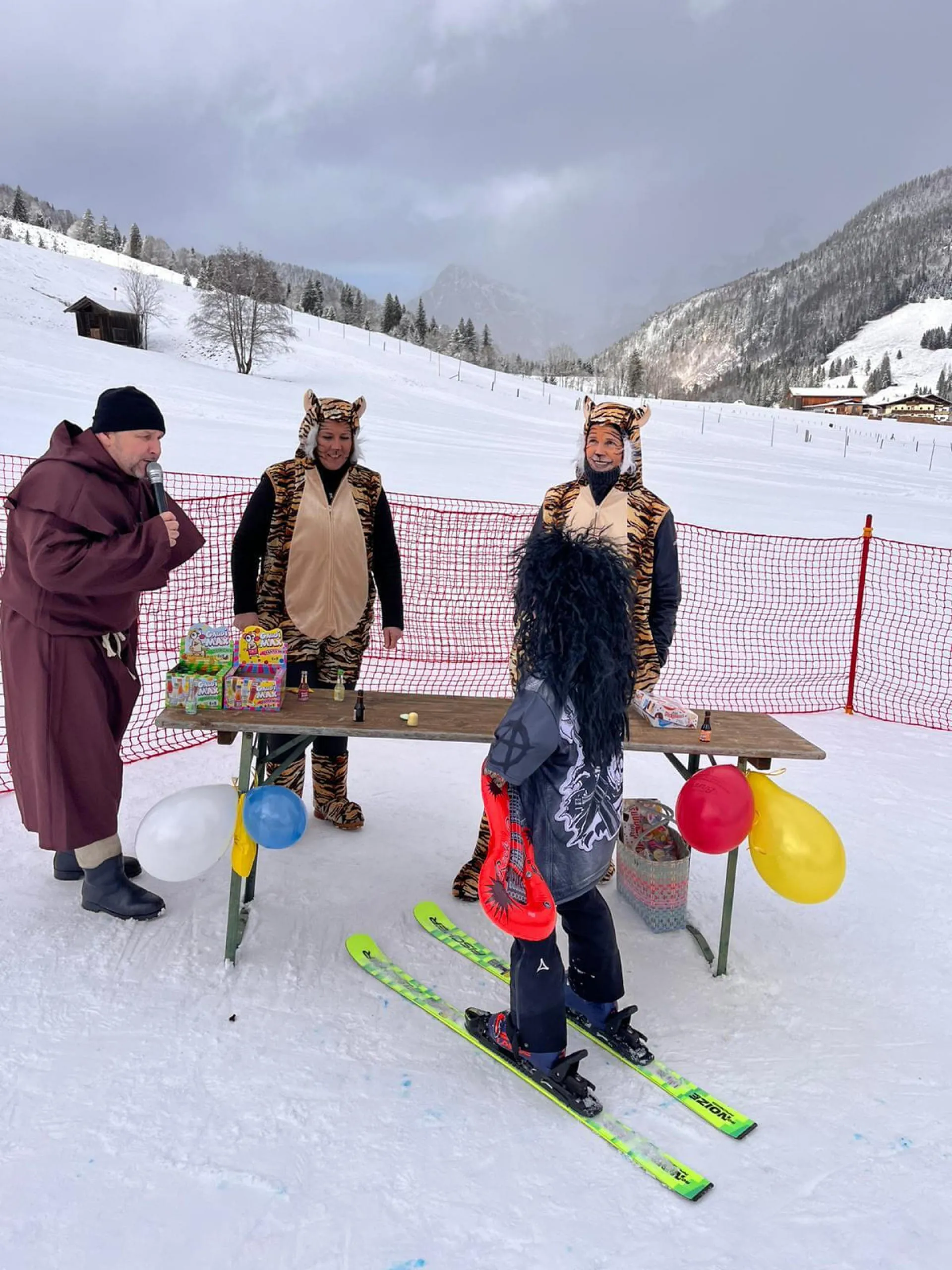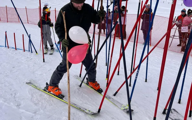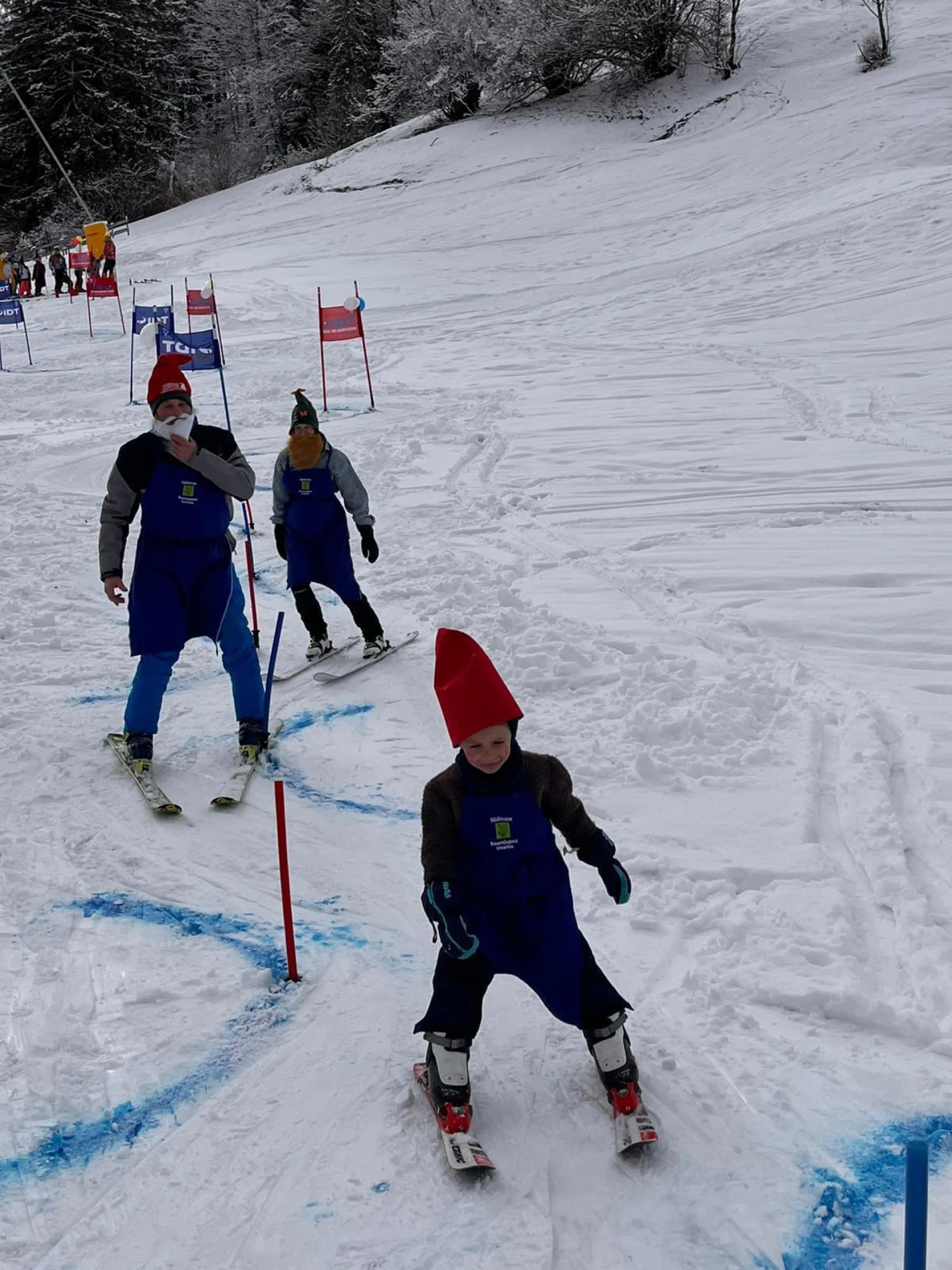 Unser Moderator Werner eröffnete heuer mit geistlichem Segen den lustigen Nachmittag. Top motiviert und bunt verkleidet starteten danach alle Läufer in das "Rennen". Der Highlight war natürlich, wie schon die letzten Jahre die Labe Station mit etwas Doping in Form von Süßigkeiten und Likör, bevor der herausfordernde "Stangenwald" zu bezwingen war. Hier hatten auch heuer wieder so manche Topfahrer ihre Probleme und es kam zu spektakulären Stürzen. Nicht jeder fand die optimale Linienwahl um mit Schwung den letzten Abschnitt zu meistern. Letztendlich konnten jedoch alle Rennläufer gesund und glücklich die Ziellinie überqueren.