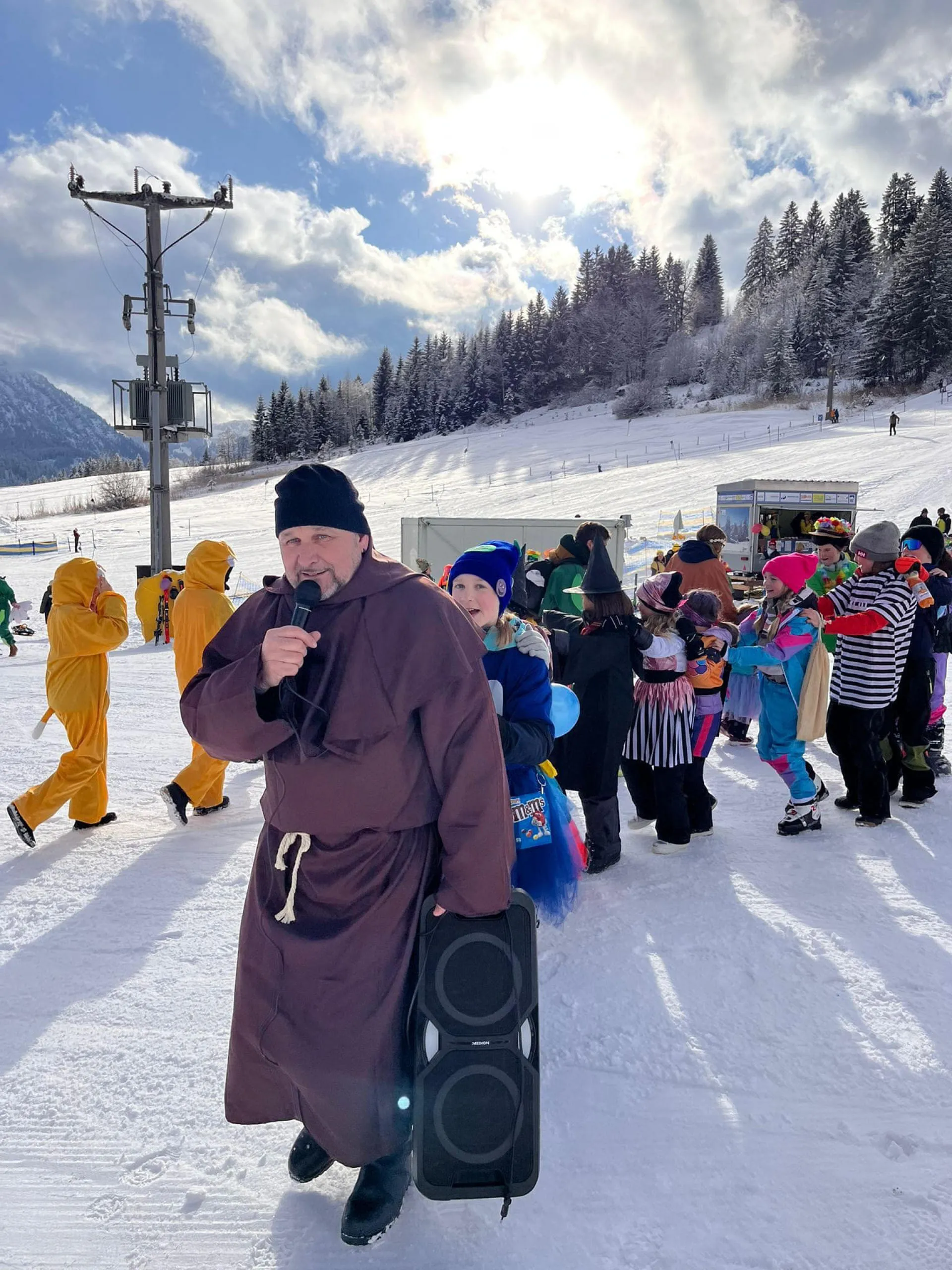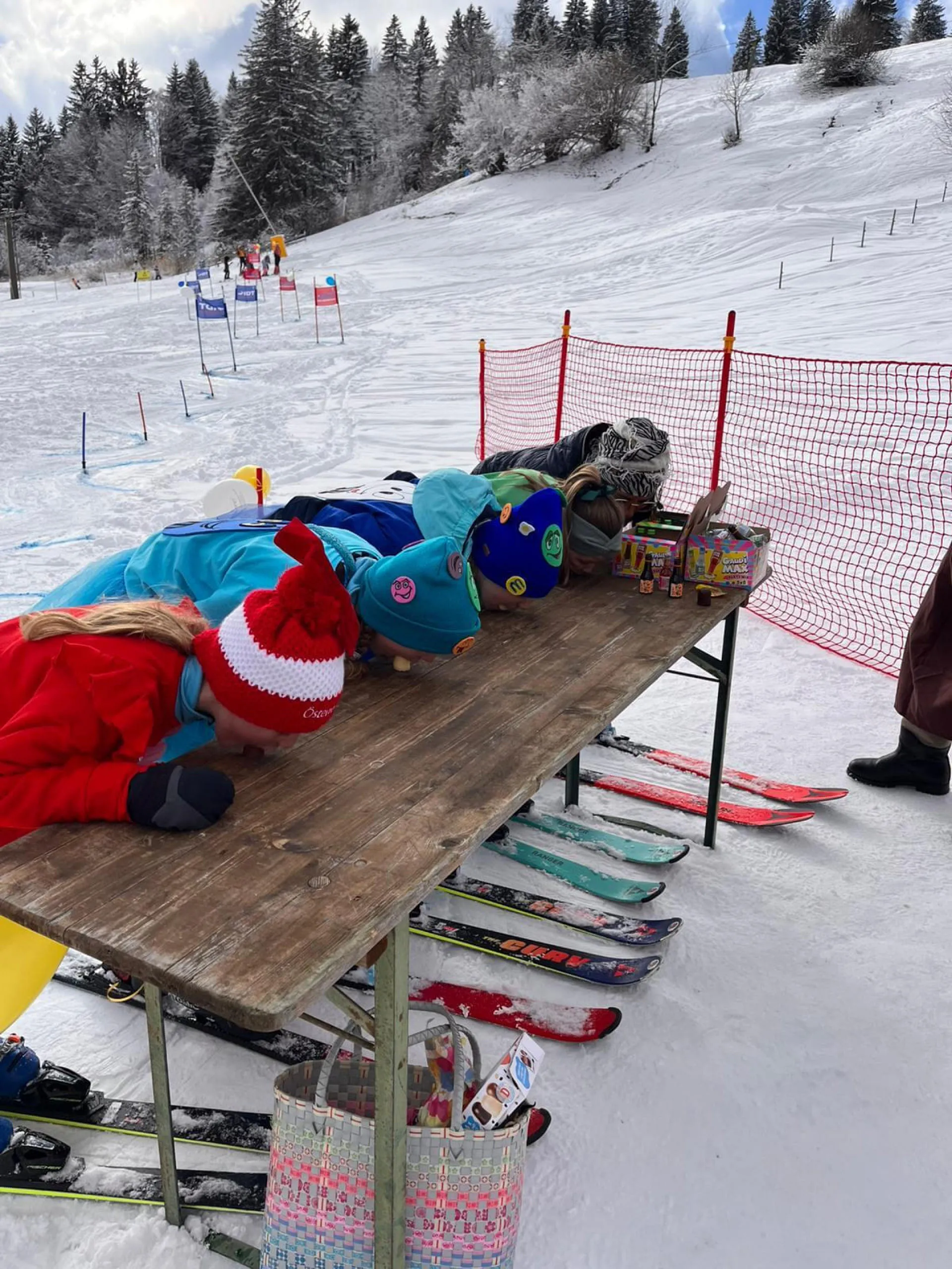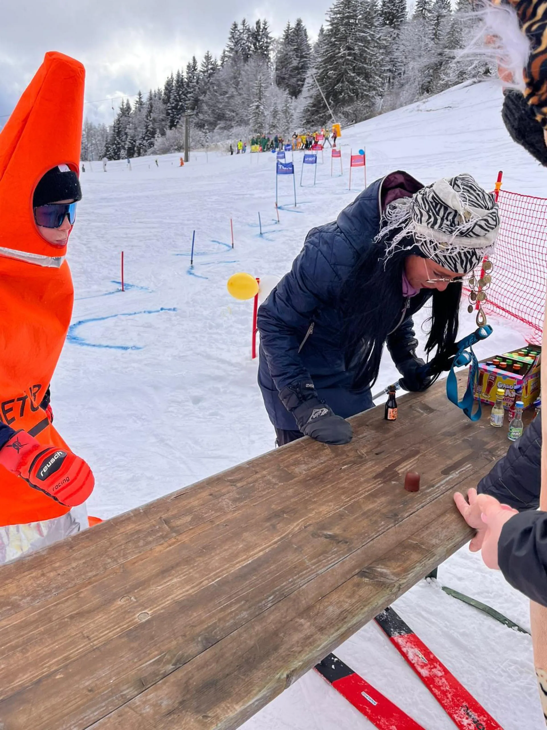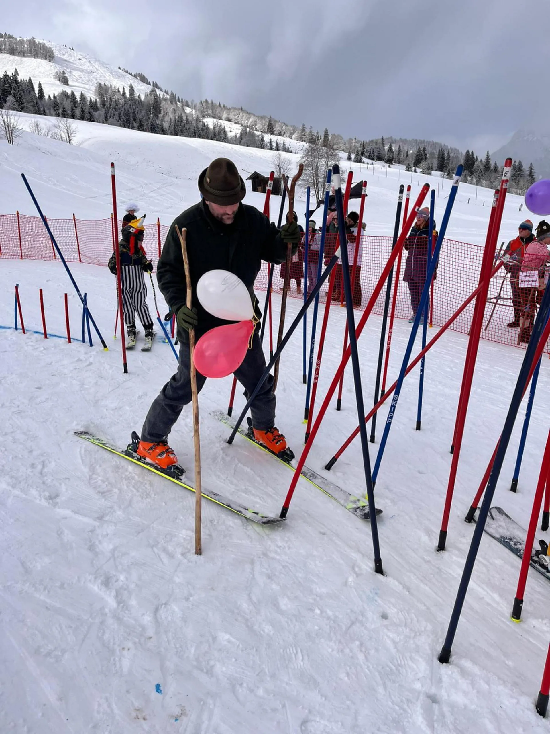 Unser Moderator Werner eröffnete heuer mit geistlichem Segen den lustigen Nachmittag. Top motiviert und bunt verkleidet starteten danach alle Läufer in das "Rennen". Der Highlight war natürlich, wie schon die letzten Jahre die Labe Station mit etwas Doping in Form von Süßigkeiten und Likör, bevor der herausfordernde "Stangenwald" zu bezwingen war. Hier hatten auch heuer wieder so manche Topfahrer ihre Probleme und es kam zu spektakulären Stürzen. Nicht jeder fand die optimale Linienwahl um mit Schwung den letzten Abschnitt zu meistern. Letztendlich konnten jedoch alle Rennläufer gesund und glücklich die Ziellinie überqueren.