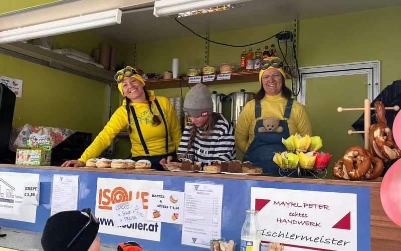 Auch zahlreiche Fans waren wiederum entlang der Strecke und feuerten lautstark und kräftig an. Fürs leibliche Wohl war am Ausschankwagen reichlich mit Krapfen und köstlichen Kuchen gesorgt. Zur Maskenprämierung zog man traditionsgemäß mit der Polonaise in den 6Kant ein. Herzlichen Glückwunsch an die drei prämierten Maskierungen "Harry Potter Truppe", "M&M's" sowie "Gartenbau Familienbetrieb". Herzlichen Dank auch an alle anderen, die sich lustige Verkleidungen einfallen ließen. Nur durch euch war dieser unterhaltsame Nachmittag möglich! Bei der "After Race Party" nahm der fröhliche Nachmittag seinen Ausklang.