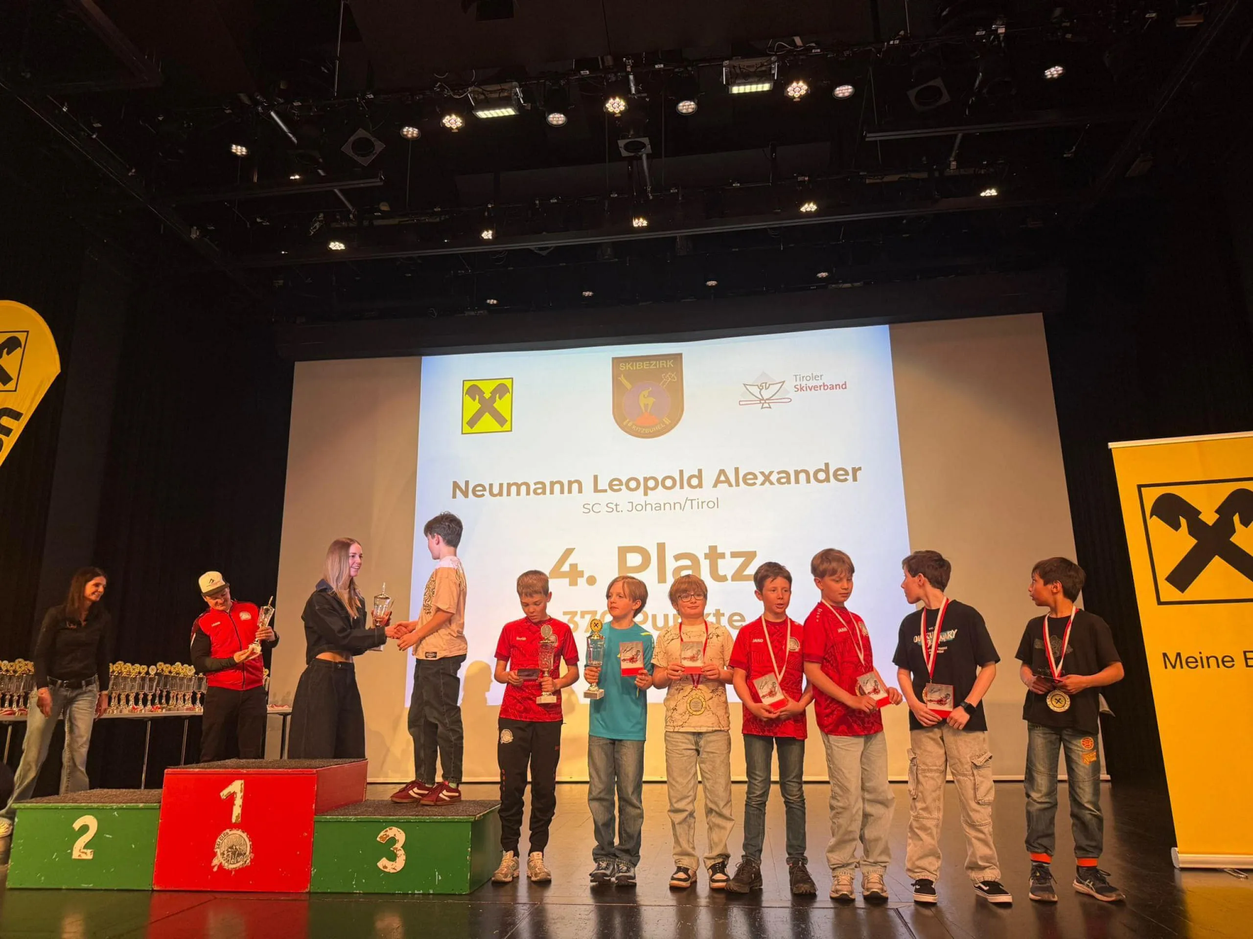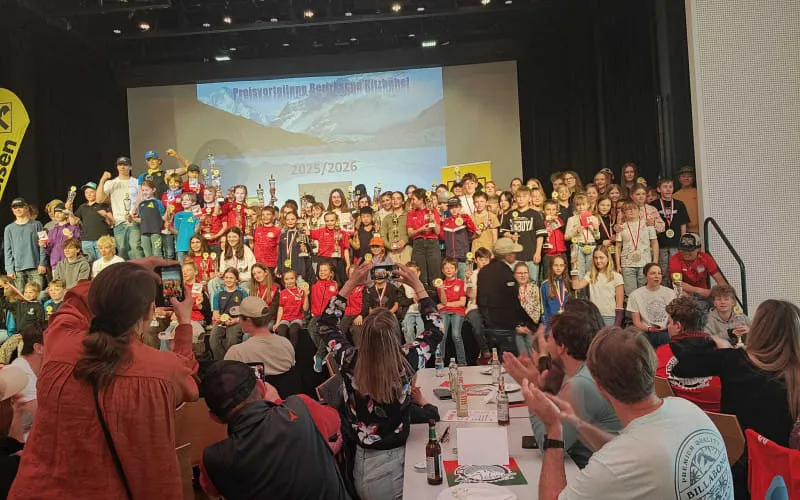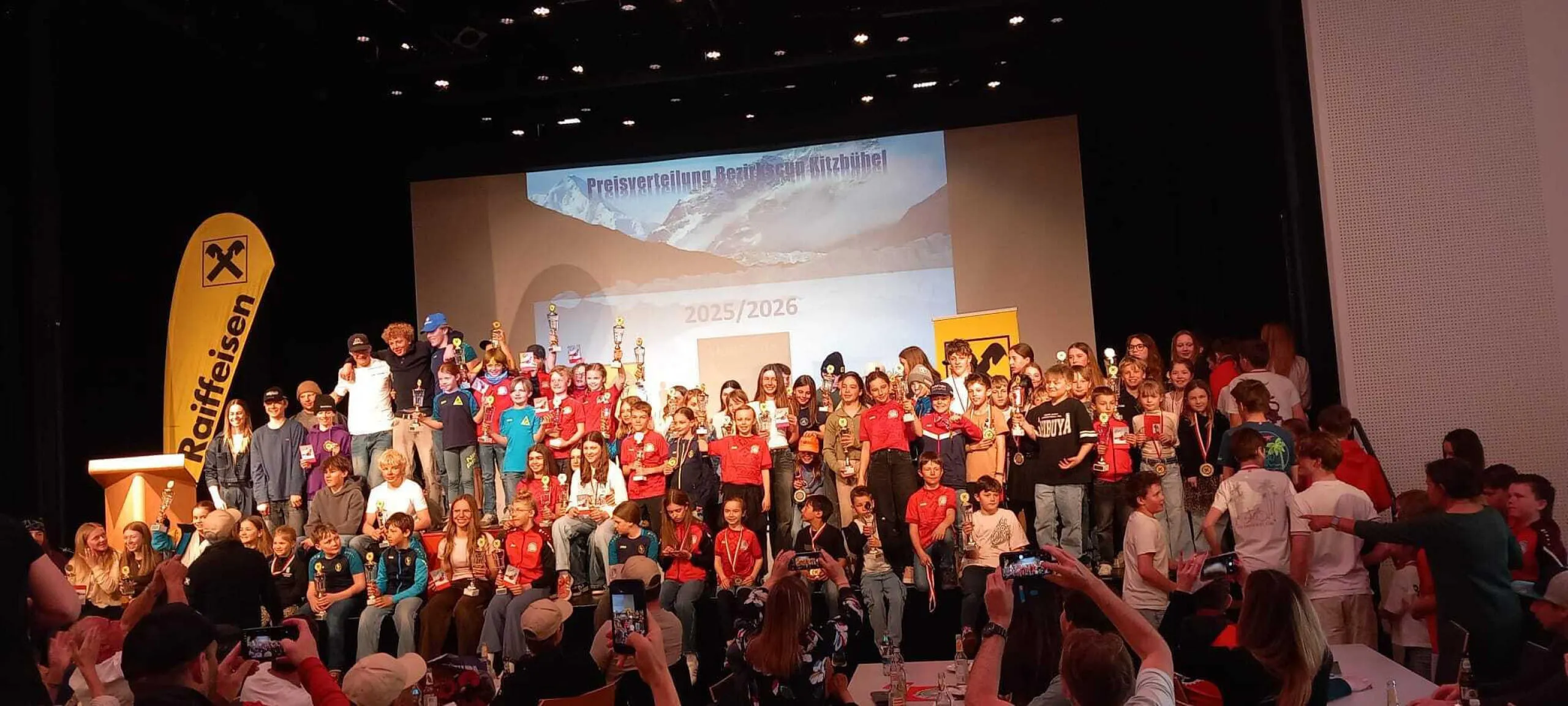 Im Kaisersaal in St. Johann in Tirol fand am Ostermontag, dem 6. April 2026, am Nachmittag die diesjährige Preisverteilung der Gesamtwertung des Raiffeisen Bezirkscups Kitzbühel für Kinder und Schüler statt. Der Saal war bestens gefüllt – zahlreiche begeisterte Sportlerfamilien waren der Einladung gefolgt. Entsprechend groß war die Vorfreude beim Skinachwuchs.